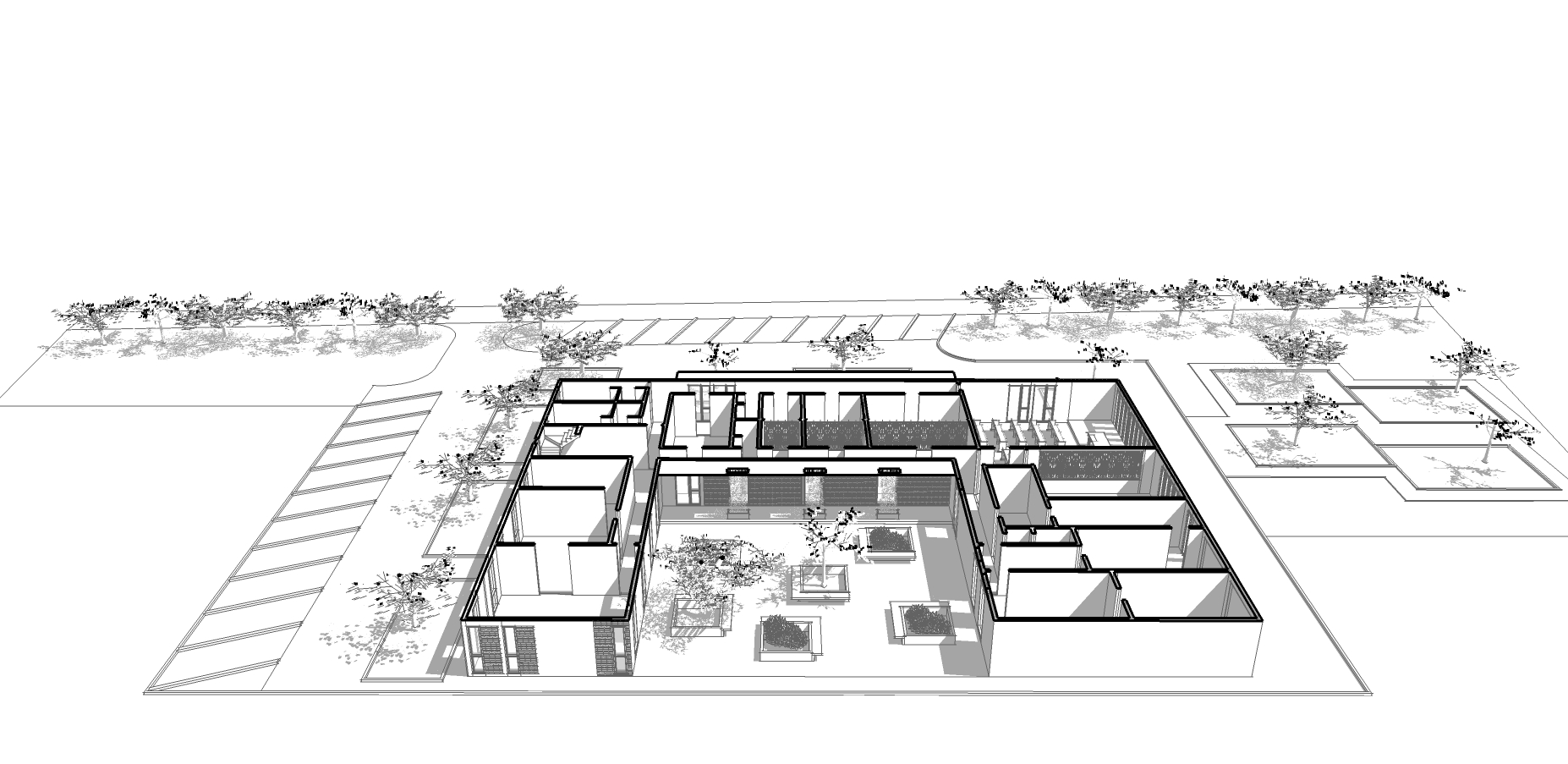 The architectural interpretation is characterized by simplicity, trying to preserve the existing qualities of the ambience in the overall picture, and with new construction to create a quality urban ambience in the wider area. The compositional disposition of the content is divided into two dimensions. 1. Residential – private part of the building. 2. Public part of the building. By separating the content into separate units, interconnected by vertical and horizontal communications, the necessary privacy is created in the residential part of the building, and certainly the communicativeness of the public part of the building with other contents on the site and the surrounding nature.